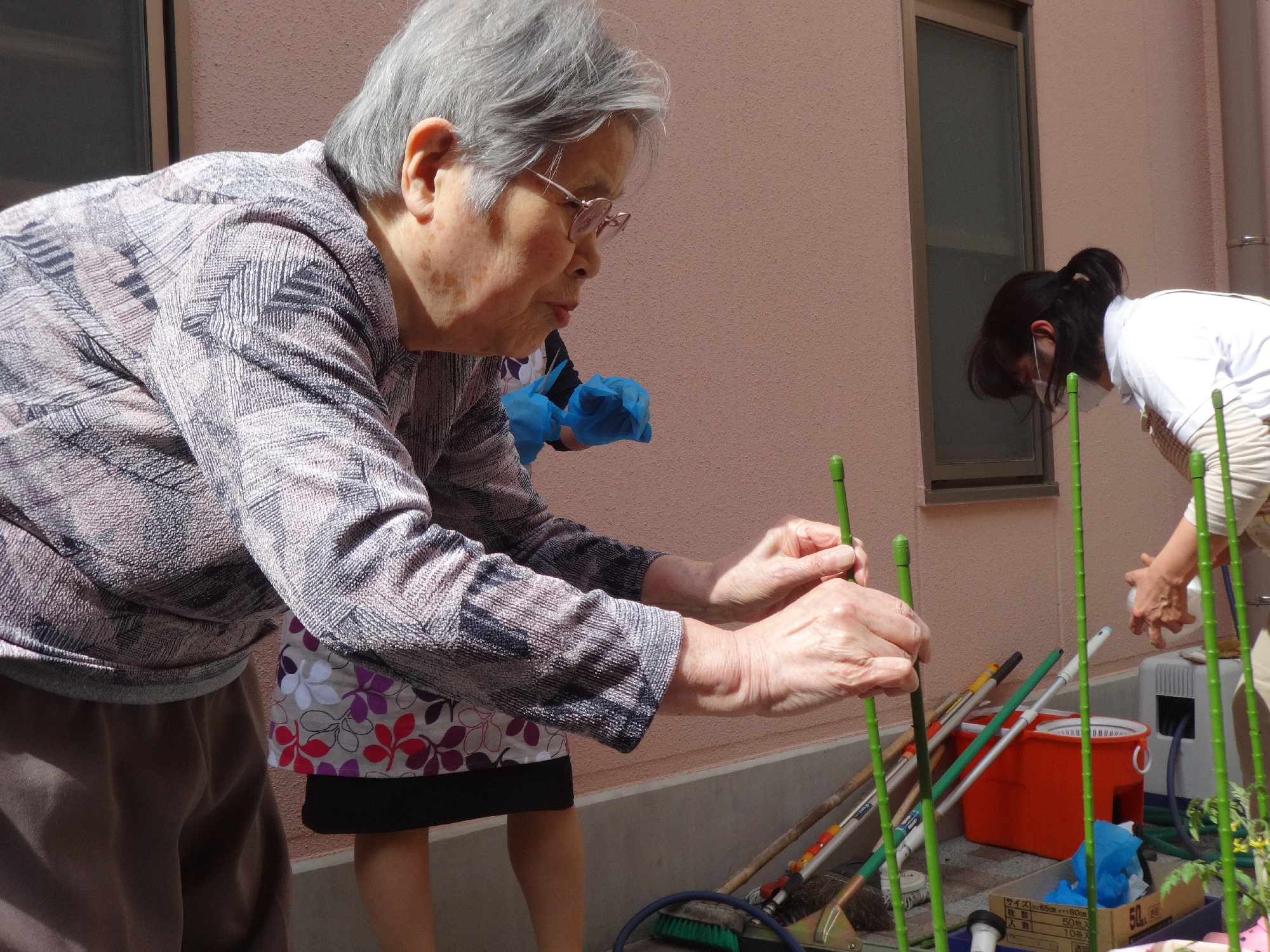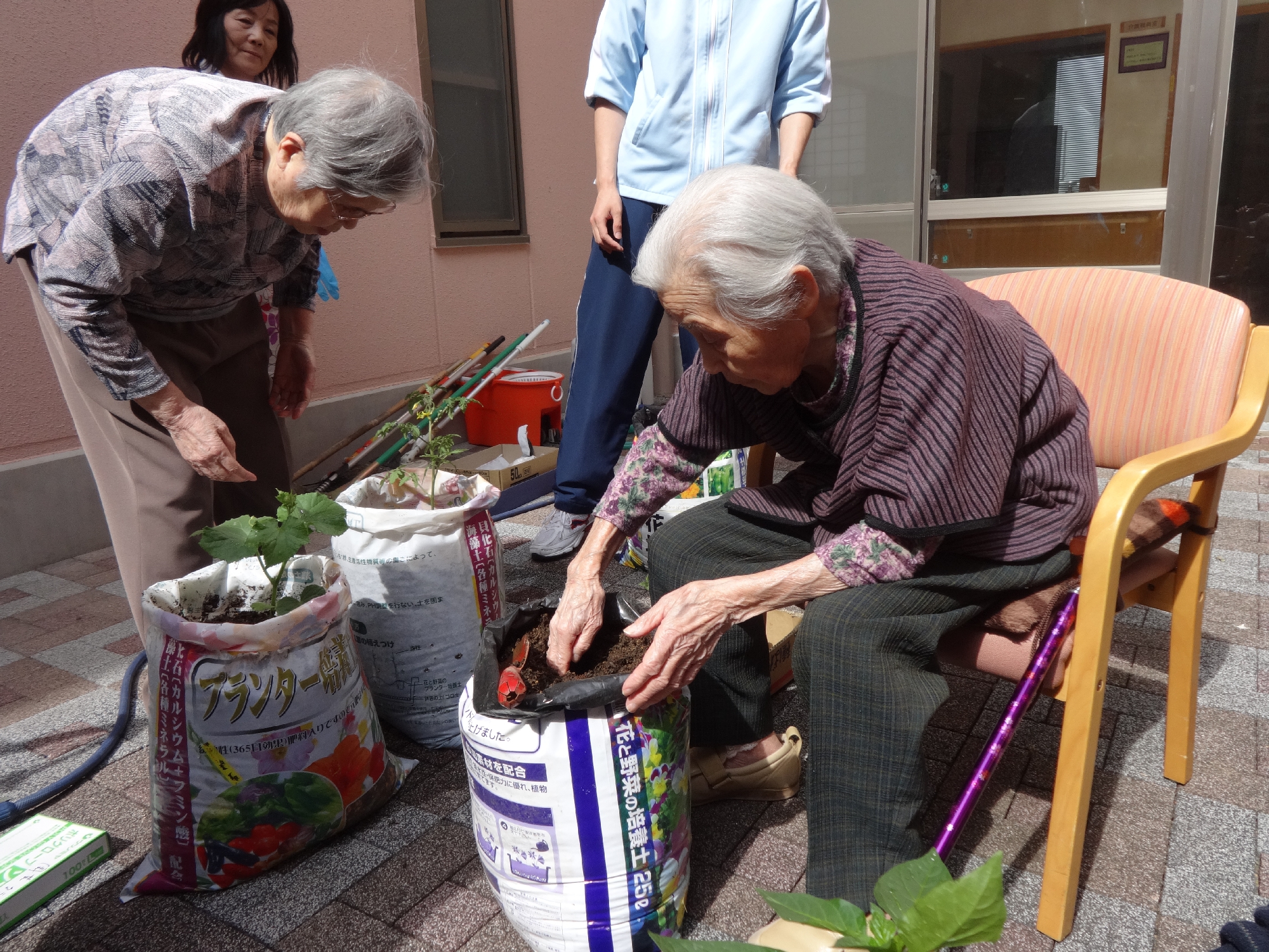 野菜の苗植えを利用者様と一緒に行いました。きゅうり、なす、ピーマン、パプリカ、ミニトマトを植えました。今から収穫が楽しみですね!