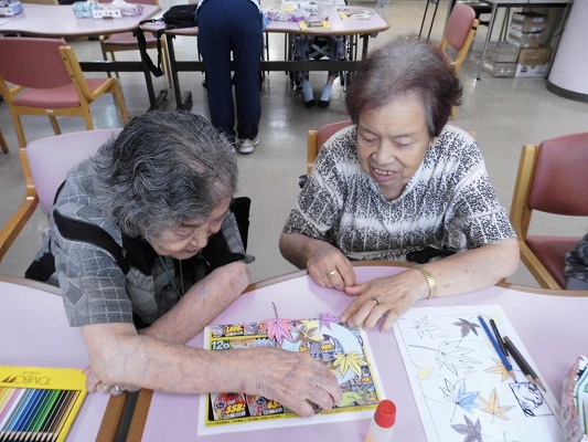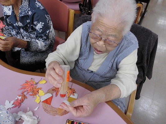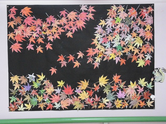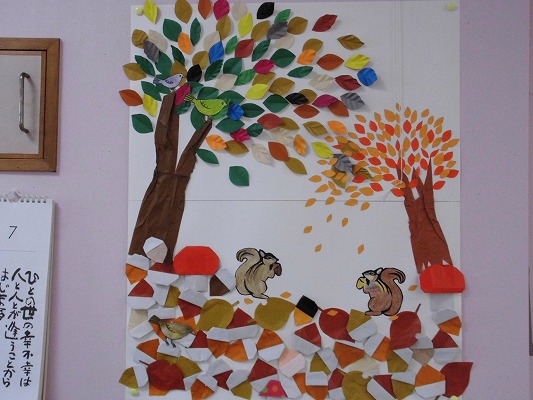 皆さんで作った秋の壁飾りが完成!!素敵な作品が出来ましたね!