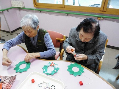 今年も残り少しとなりました。デイサービスではクリスマスやお正月飾りの素敵な作品ができています。