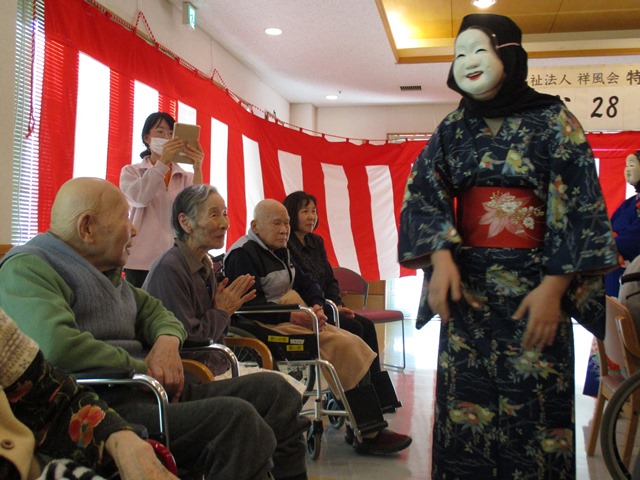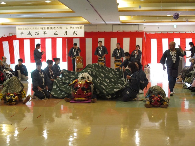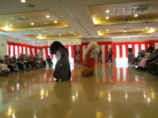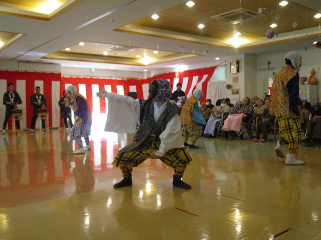 1月3日に憩いの里では正月式が行われました。今年も永井の永親會の皆様にお越しいただきました。小さな子供たちが入居者様の目の前まで来てくれて踊ってくれました。入居者様も本当に喜ばれていました。今年もよい1年になるよう頑張っていきたいと思います。