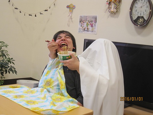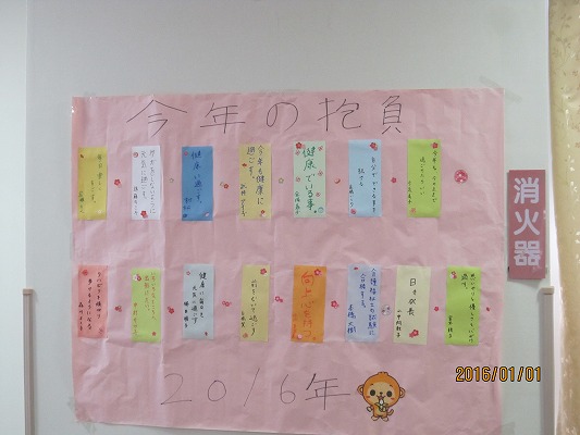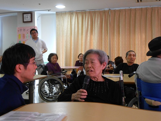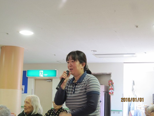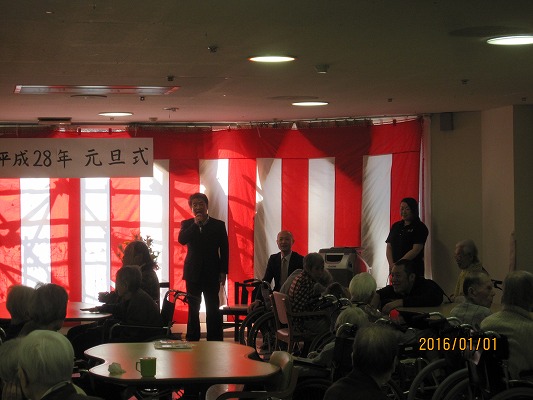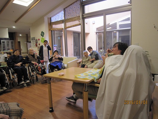 天候にも恵まれた今年の元旦式では、「年女」となるご利用者様と「年女」職員から新年の抱負が発表されました。皆で会食をし、午後からは従来とユニットに分かれ、それぞれで職員による出し物で“初笑い”しました。