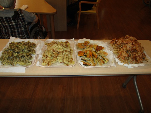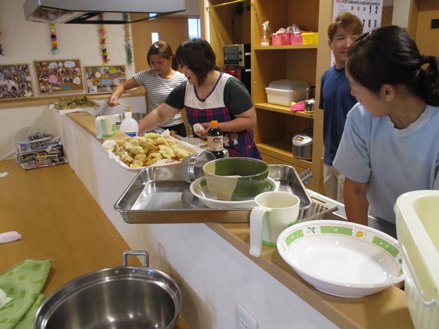 ネギとミョウガ入りのおつゆで、おいしそうに召し上がっていました。ユニットで調理した天ぷらも「揚げたてでおいしい!」と大変喜ばれていました。
