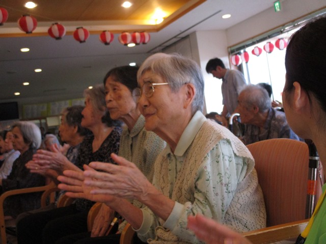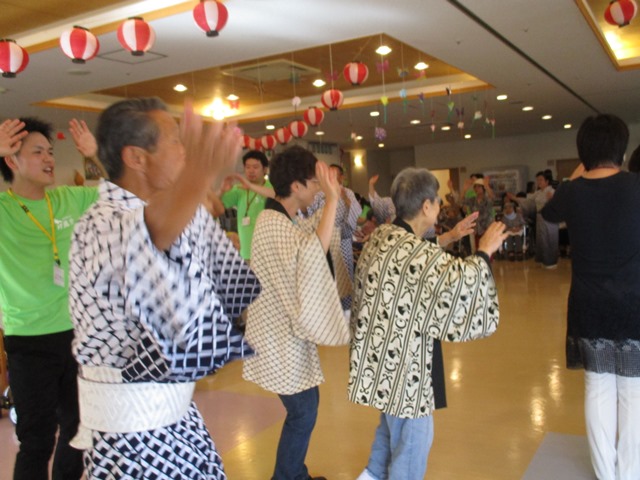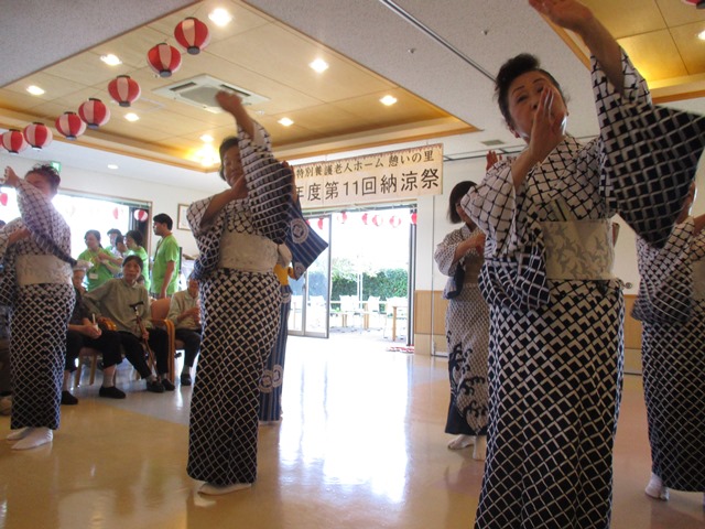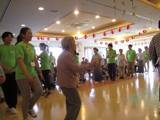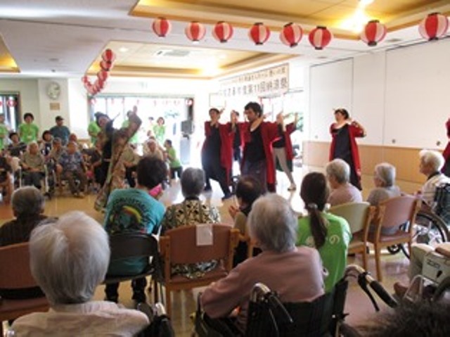 7/31 第11回憩いの里納涼祭が開催されました!開催前は突然の通り雨に慌てましたが、開催時には晴天に恵まれ、天気からも納涼祭からも”夏”を感じられたのではないでしょうか。かき氷にアイスクリーム・焼きそば・焼き鳥・ヨーヨー・お菓子つかみどりなど屋台もたくさん。そして今年も土浦民舞踊ボランティア様による踊りが披露され、入居者様も一緒に踊る姿はとても素敵でした!最後は職員によるソーランで盛り上がっていました!