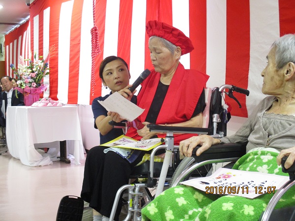 今年は米寿(88歳)を迎えられた方が6名、喜寿(77歳)を迎えられた方が3名おり、賞状を贈呈させて頂きました。また、今年の飛羽ノ園最高齢は98歳!! 足腰丈夫で笑顔の素敵な女性のご入居者様です。