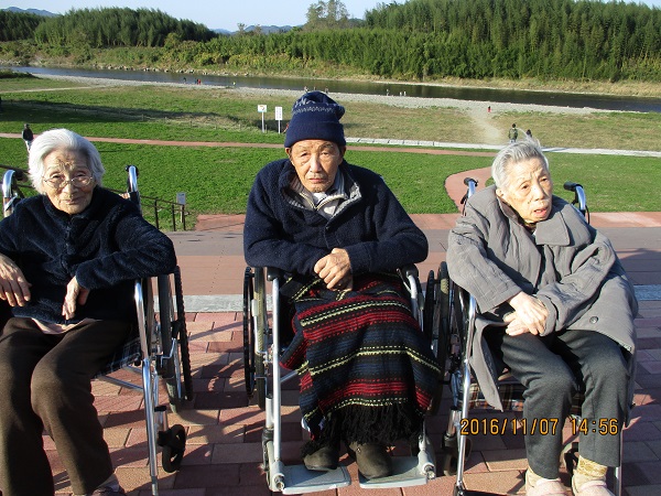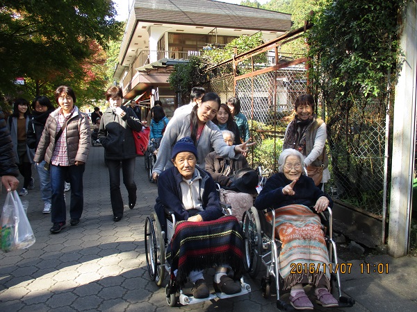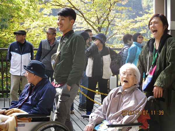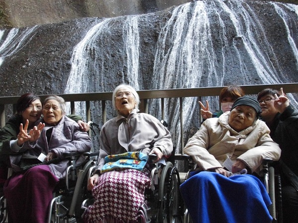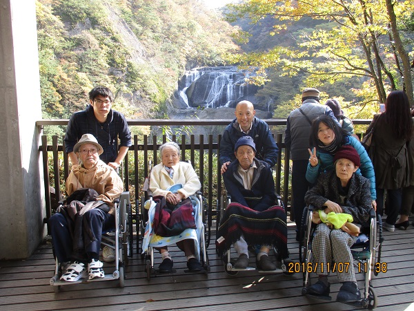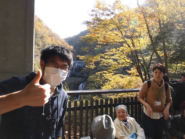 11月7日 飛羽ノ園のご利用者様と一緒に日帰り旅行に行ってきました。今年は「袋田の滝」と「道の駅かわプラザ」まで足をのばしました。