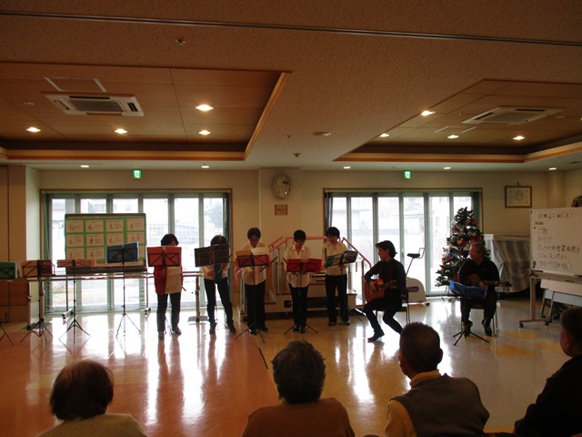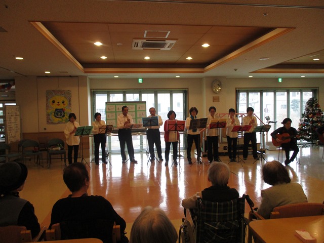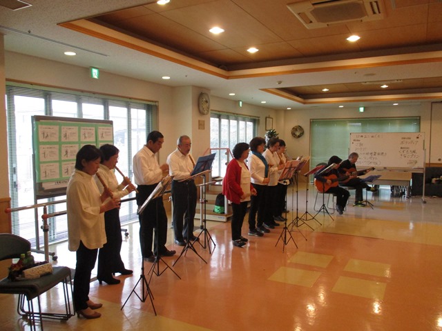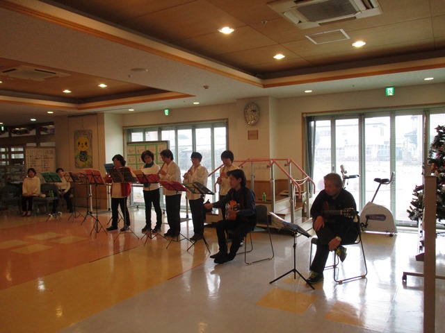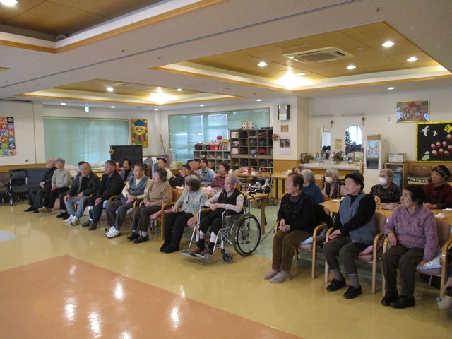 12/22 ”ケーナ”ボランティア様が来園されました。ケーナとは、南米ペルー、ボリビアなどが発祥の縦笛(気鳴管楽器)です。透き通った音色で、聞き手を幸せにしてくれる、そんな楽器です。入居者様、デイサービスご利用の皆さま、熱心に聞かれる姿が印象的でした。,ボランティアの皆様、ありがとうございました♪