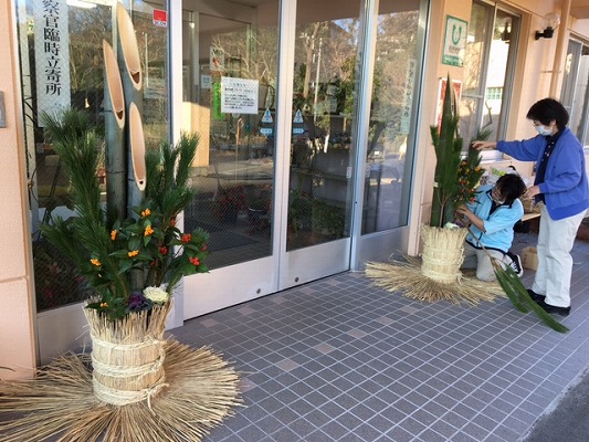 玄関に門松を飾りました!恒例となった職員の手作りです。今年も立派に完成しました。
