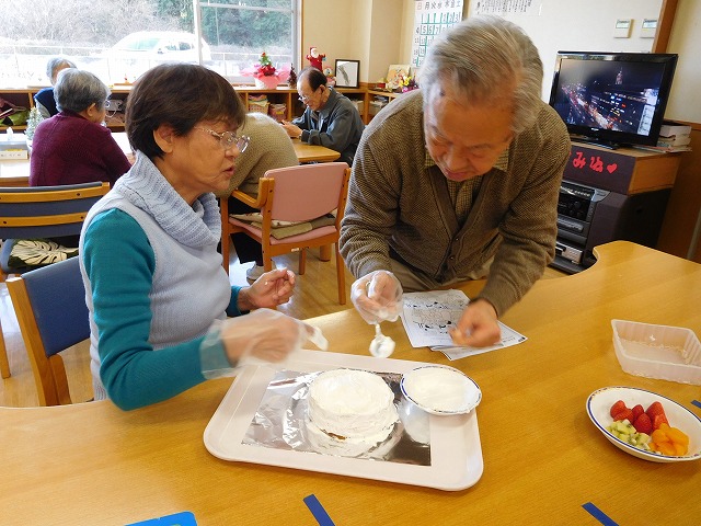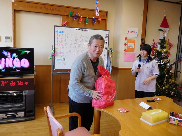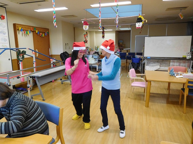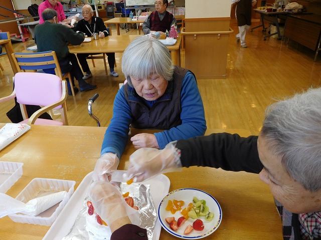 12月24日(土)、25日(日)はクリスマス会でした。 自分たちの手でデコレーションしたクリスマスケーキ、大盛り上がりのビンゴ大会と楽しいこと目白押しのクリスマス会となりました。クリスマスソングがかかると踊り始める利用者と職員もいて、笑いのたえない、賑やかな2日間でした。