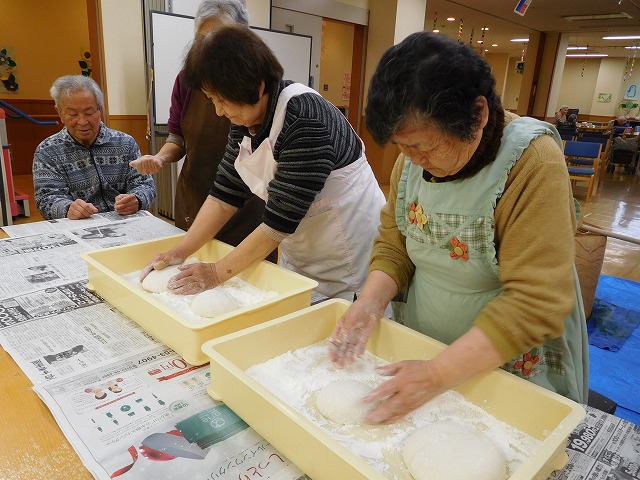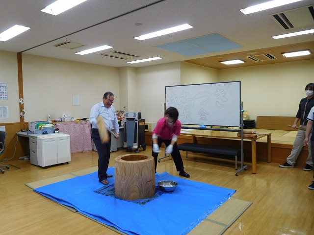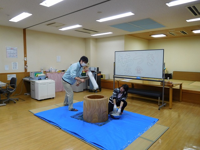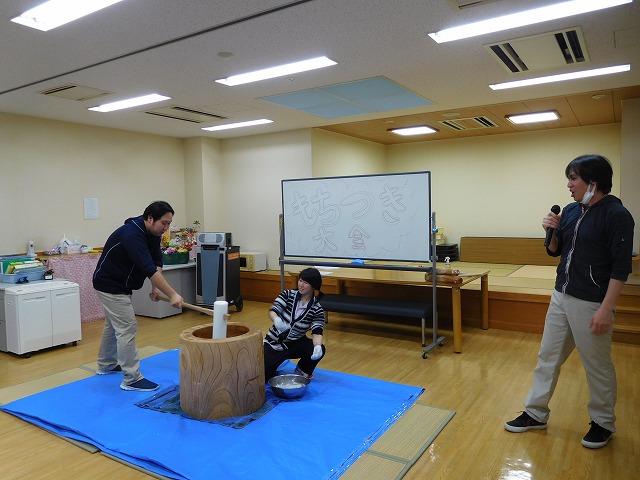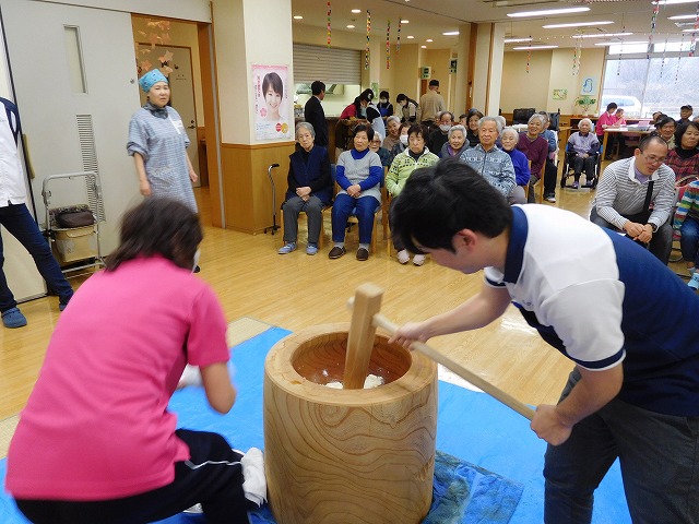 12月27日(火)に餅つき大会を行いました。 ふれあいセンターとの合同開催となり、利用者様、ご家族様、職員で力を合わせて餅をつきあげました。自らついたお餅はおいしいと皆様、口を揃えて言ってくださりました。ご来館とご協力をありがとうございました。