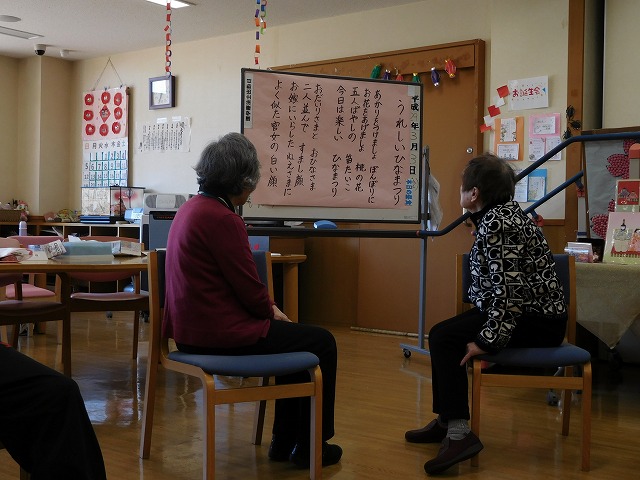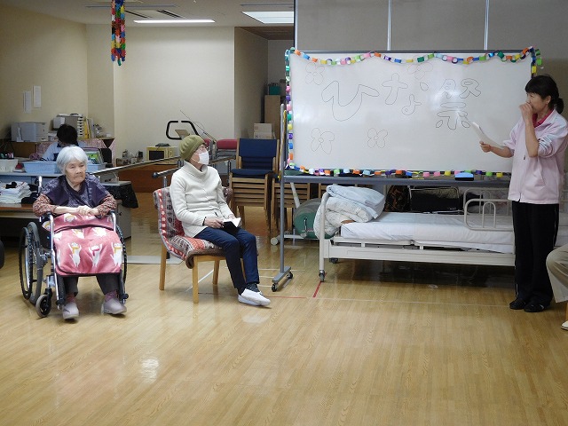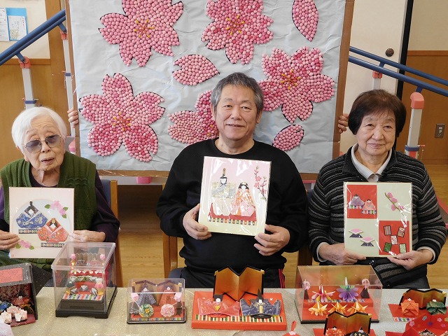 ひな祭りにちなんだクイズ、おやつには桜と梅のゼリーと季節感を楽しむひな祭りとなりました。