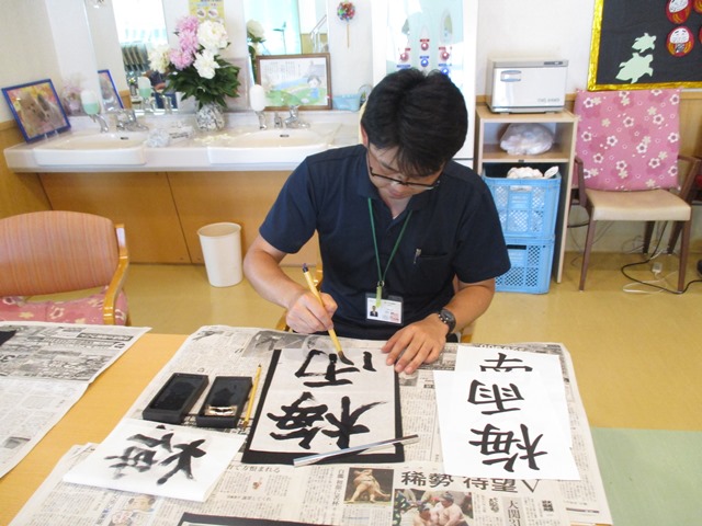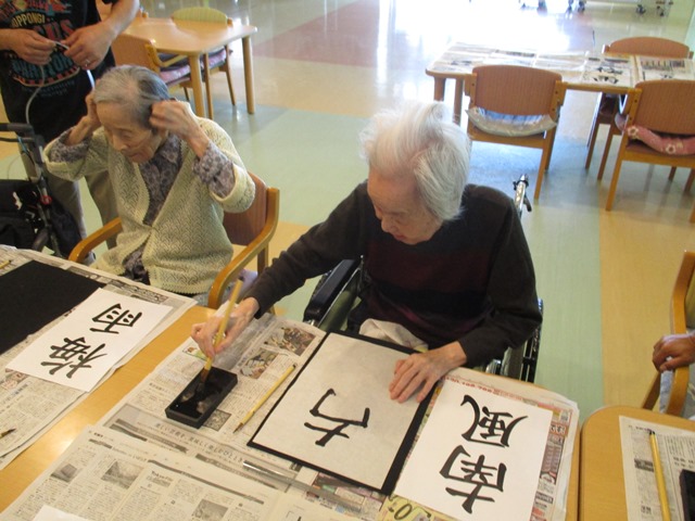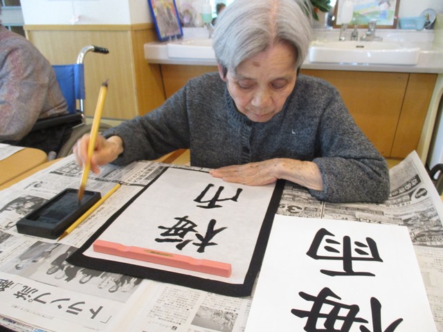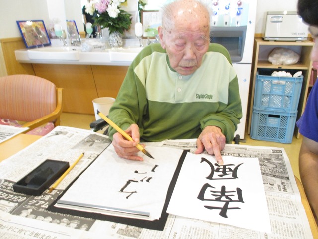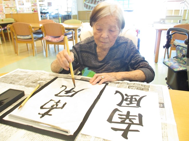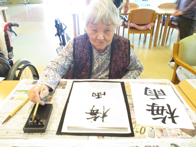そして入居者様と一緒に施設長も書道!達筆です(^-^)