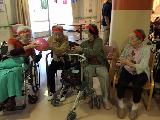 玉入れ・ボールまわし・つなひき・借り物競争と、ご利用者様も職員も、みんなイキイキとした笑顔で大盛り上がり!(写真をご覧下さい☆) 体を動かし、たくさん笑って、気分爽快な時間となりました。
