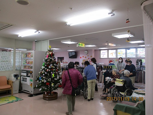 11/19、午後から1Fデイサービスフロアがデパートに変身!ずらっとお洋服や小物が並び、わくわくする空間になりました。皆様思い思いに気になるものを手に取り、鏡で合わせたり試着したり・・・。とても満喫されていました。来月のクリスマス会でのおめかしが今から楽しみです☆