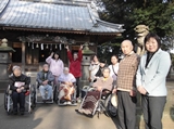 1月9日に、入居されている方々と職員で、近くの神社まで初詣に行ってきました。お願い事はいっぱいしたようで、神様も大変かと・・・。 初詣の後は、楽しみにしていた甘味です。美味しく食べれたと喜んでいました。アレ・・・?早速「おいしいものが食べたい」という願い事が叶ってしまったようです(笑)