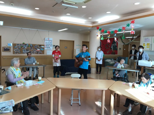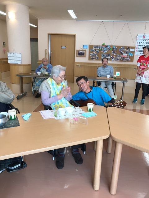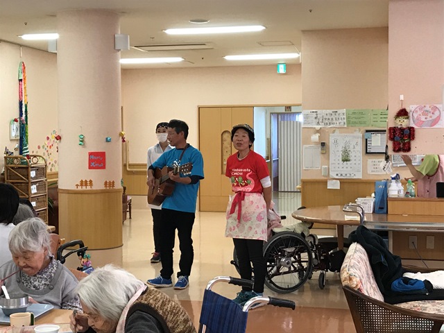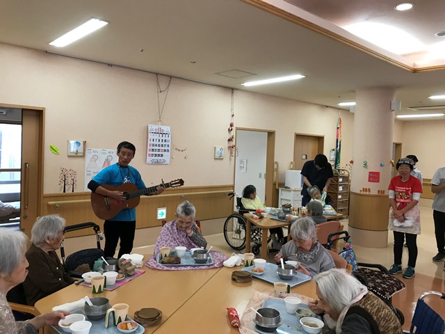 これから寒くなる季節。外出機会も少なくなりますが、施設にいながら外食気分を味わえるのは楽しみの一つ♪店長のギター生演奏で盛り上がり、楽しい昼食会となりました♪