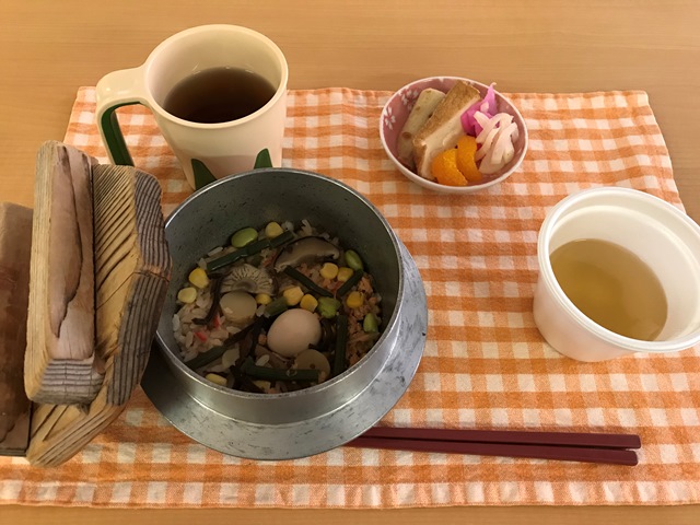今日は出前食の日♪以前から利用させて頂いております、なべっこ宅配様の御協力で、おいしい釜飯を食べました!