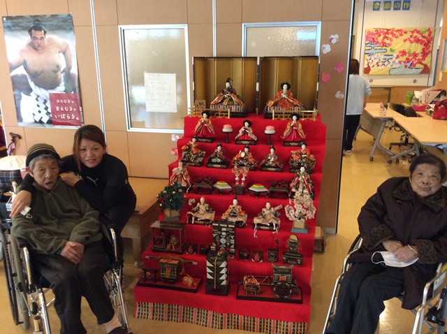 さて、憩いの里では各ユニットで雛祭り会が行われました。ショートステイでは雛人形を折り紙で作り、大変喜ばれていました!春はすぐそこですね♪