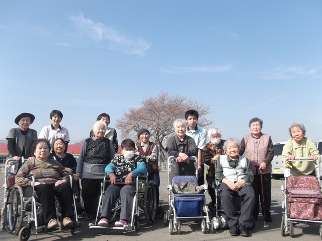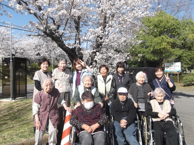 今年は桜の開花時期が早かった為、4月上旬を予定していましたが、3月末よりお花見ドライブとして「筑波総合体育館」へ出掛けました。満開の桜の中いつもより会話も弾み、短い距離ではありますがみなさん笑顔で散策されました。お天気も恵まれ、桜も綺麗に咲いており、皆さん大満足!そして最後は恒例の記念撮影です!