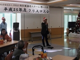 家族会の後に、クリスマス会を開催いたしました。サンタクロースからのプレゼントと美味しい料理、ハーモニカのボランティア様と職員の踊りを行いました。おかげさまで楽しい雰囲気でクリスマス会を行うことが出来ました。ご協力いただいた皆様には、大変感謝しております。 参加された方々からも、満足の声をたくさんいただくことが出来ました。