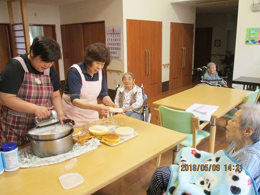 飛羽ノ園 とわで母の日会を開催し、職員と入居者様でケーキ作りをしました♪