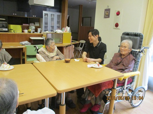 食べ応えのあるケーキが出来上がり、「大きいね~」と利用者様から声が聞かれましたが