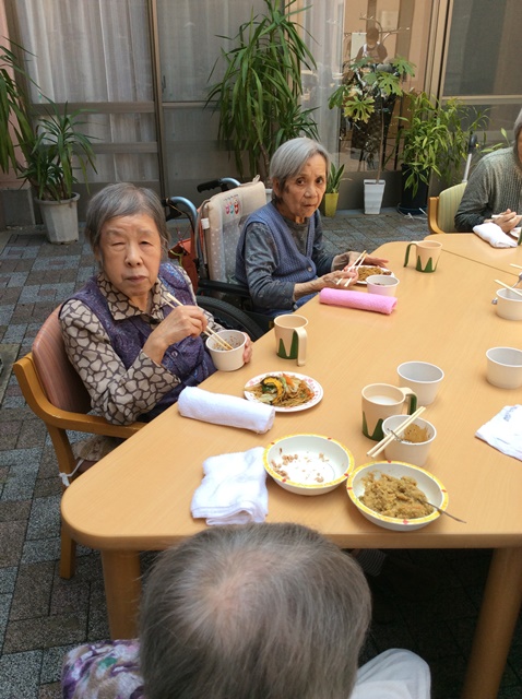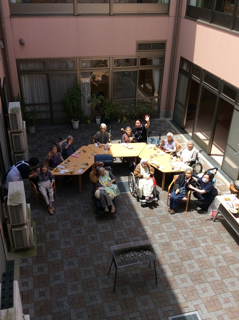 憩いの里りんどうユニットでは、中庭を活用してバーベキューが行われました。お肉はもちろん、野菜、やきそばなどが提供され、皆様大変喜ばれておりました。外で食べると格別においしく感じるね、との声もきかれ、楽しいひとときを過ごしました♪