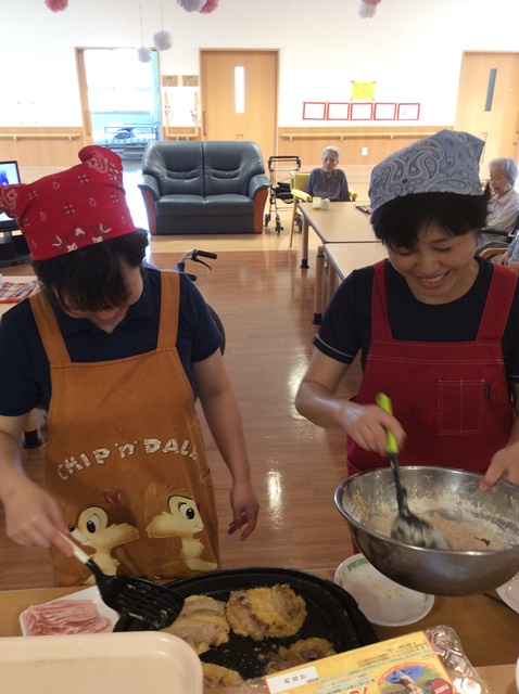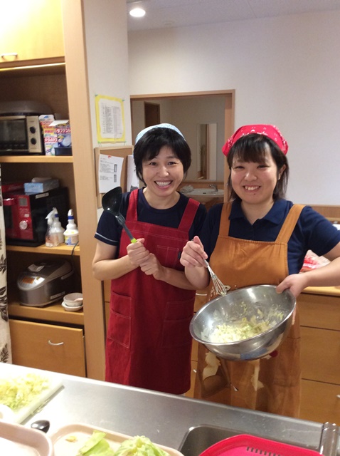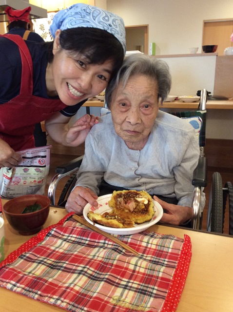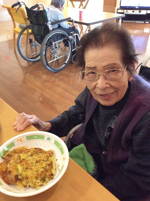 憩いの里コスモスユニットで、お昼にお好み焼きパーティーが行われました。「お好み焼き?!」という反応でしたが、食べてみたら大好評!!ユニットからは、いい香りと楽しい声が響いておりました♪
