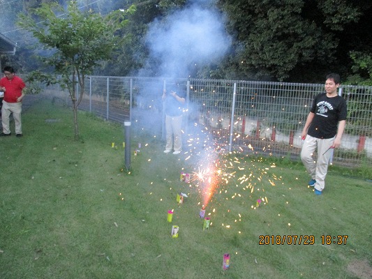 今回は噴出花火を多めに行ない、手持ち花火とはまた違った迫力のある花火大会となりました♪