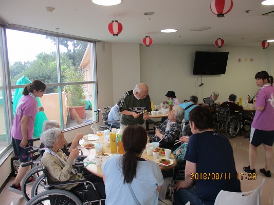 平成30年8月11日に飛羽ノ園 従来型のホールとベランダにて、第28回 納涼祭を開催しました♪