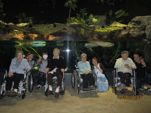 毎年恒例、憩いの里日帰り旅行。今年はアクアパーク品川へ行ってきました!さくらツーリスト様のご協力のもと、入居者様13名、ご家族様2名、職員16名、の計31名で楽しんでまいりました♪アクアパーク品川で一番人気だったのがイルカのショー!職員も大興奮でした(^ー^)