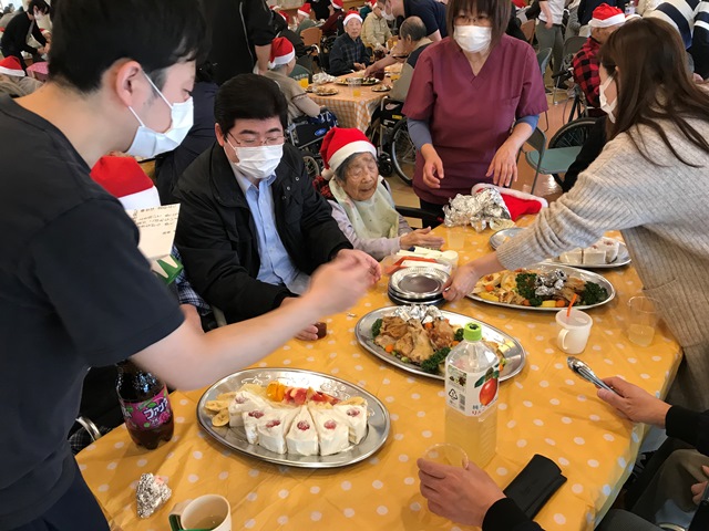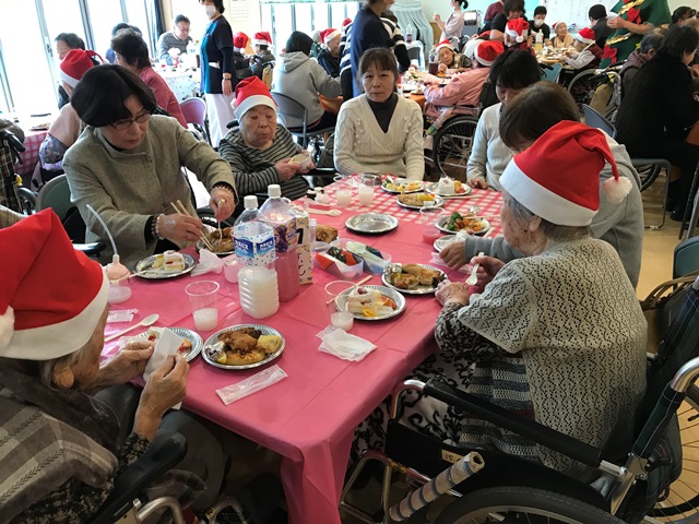 さて、今年も盛大にクリスマス会を実施致しました!職員から歌とハンドベルの演奏が行われ、とてもにぎわっておりました。また、サンタクロースからは、ひとり一人のご要望に合わせたプレゼント!大変喜ばれておりました。