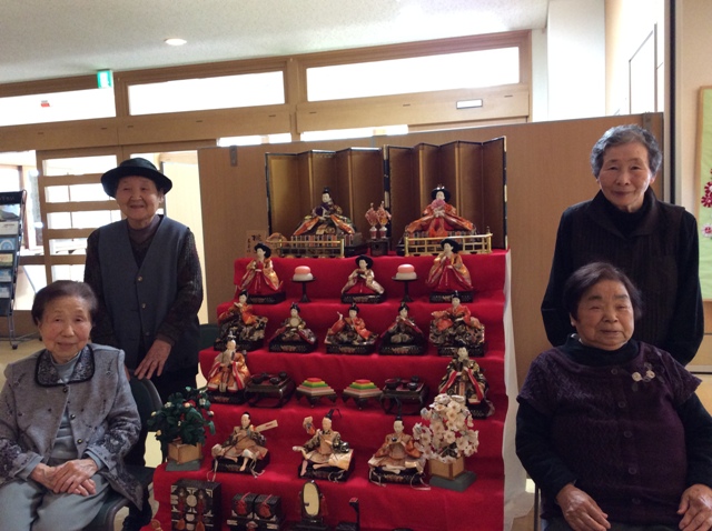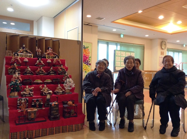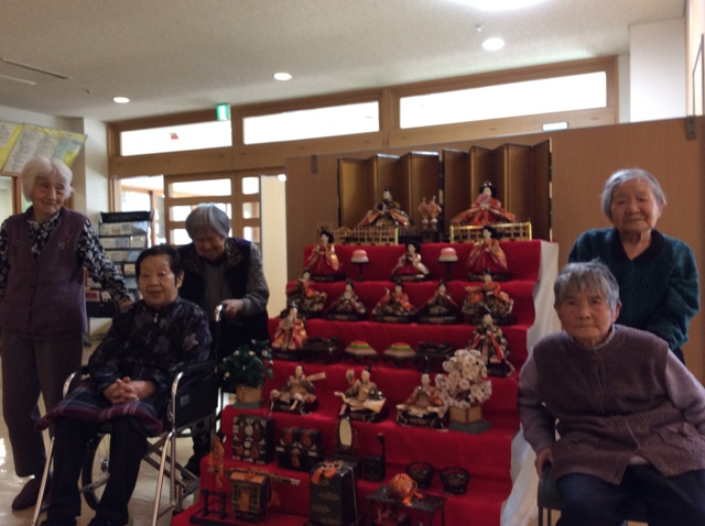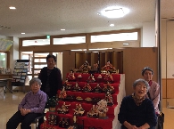 雛人形の前で写真を撮り、皆さん素敵な笑顔でした!おやつには、イチゴ・抹茶のババロアと甘酒を召し上がりました。行事ごとで季節感を感じていただきながら食事やおやつでもその季節のものを召し上がり、雰囲気を味わっていただければと思っております。