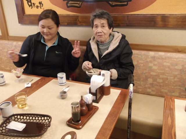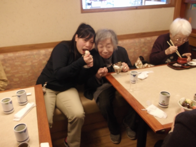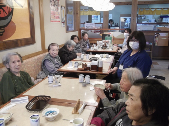 3月26日~4月5日の約2週間、デイサービスでは花見&甘味ドライブに行ってきました。お花見は土浦市内をまわり、ドライブの後は真鍋にあります「すぎのや本陣」にて甘いデザートを食べてきました。「甘くて美味しいよ!」と皆さま素敵な笑顔で召し上がられていました。桜はつぼみの所もありましたが、「また出掛けたいね!」と満足いただけました!
