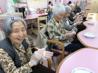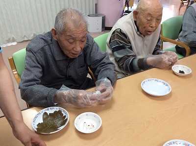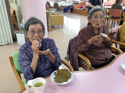飛羽ノ園デイサービスのみんなで柏餅を手作りしました。子孫繁栄の意味を込めて、利用者の皆様大小さまざまで個性豊かな柏餅を作る事が出来ました。買って食べるものとは一味違って、自分で作ったものは格別の味です。皆様「おいしいね」や「懐かしいね」などと会話も弾み、季節感のある行事となりました。