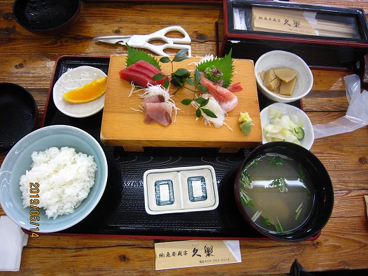 まずめんたいパークで工場見学を楽しみ、お昼は那珂湊の”久楽”さんで新鮮なおさしみ定食を