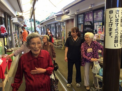 仲見世での買い物で、「少しでも観光気分を味わっていただきたい」と考え企画しました。梅雨入りということで天候が気になりましたが、前半は晴天に恵まれることが出来ました。後半も雨が降ることなく外出できました。