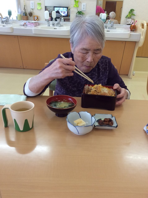 今回、あじさいユニットではユニット行事として出前食を行いました。近くの定食屋さんから、利用者様がメニューの中から食べたい物を選び出前を取りました。