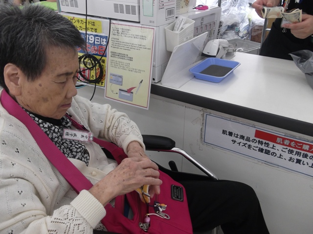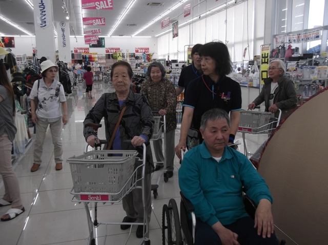 今月は17日から8日間、サンキ土浦店へ買い物に行ってきました。皆さま、それぞれ欲しい物をカゴに入れてお話しながら笑顔で買い物をされていました。「ずっと買い物に行きたくて楽しみにしていたのよ!」と喜ばれていました!