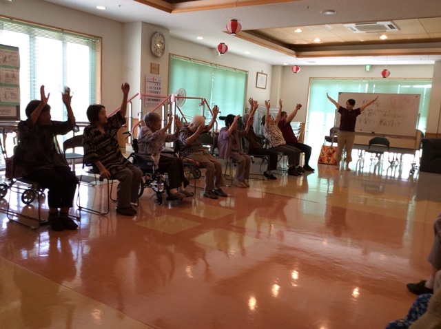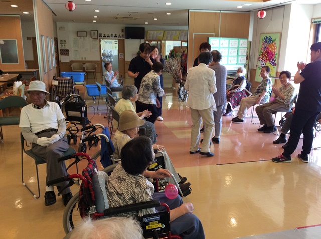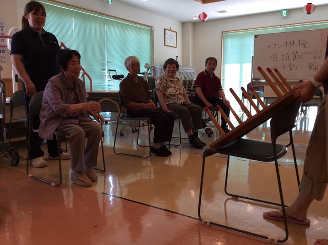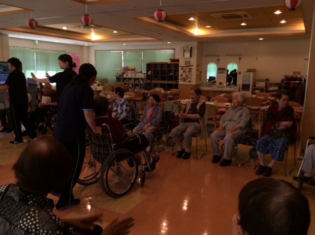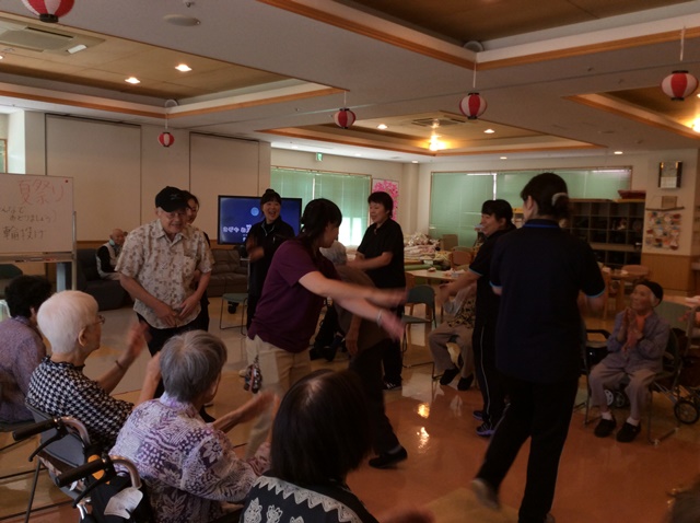 今月は、毎年恒例のデイサービス夏祭りを開催いたしました!今年はヨーヨー釣りと輪投げを行ないまして、うまい棒の景品もあり、皆様笑顔で楽しまれていました!おやつでは、かき氷を提供し、イチゴ味やメロン味、ブルーハワイなど好みが分かれ、「冷たくて美味しいよ!」と喜ばれていました!