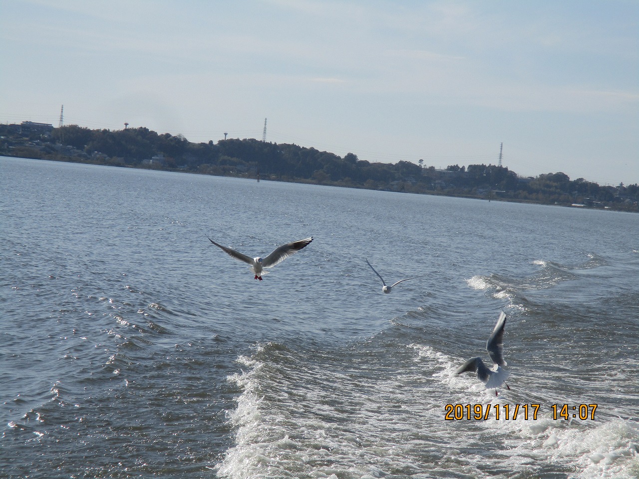 観光船の「ホワイトアイリス号」に乗り霞ヶ浦を満喫しました!その日は天候にも恵まれ、かもめも沢山寄ってきました♪