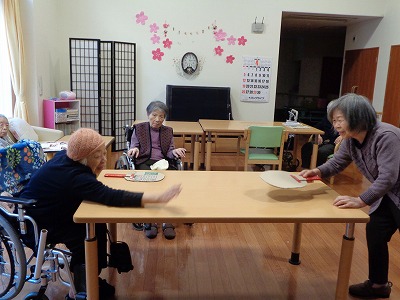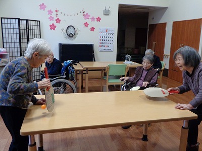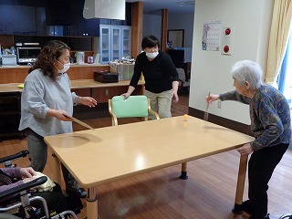 令和2年4月6日に飛羽ノ園ユニット型とわにて職員手作りの段ボールラケットで卓球大会を開催しました!