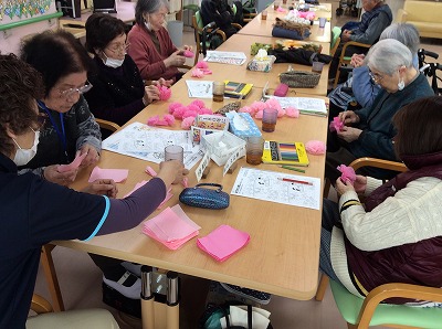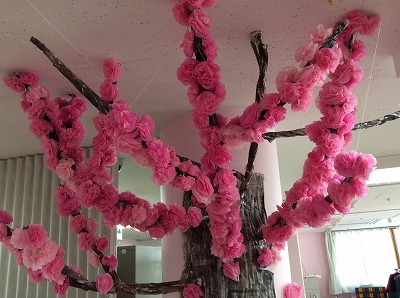 今年の桜の花見ドライブはコロナウイルスの影響で、車外に出ることが出来ません💦そこで、デイサービスの中に桜を咲かせようとご利用者、職員力を合わせて作りました。コツコツコツコツ、空き時間を活用し花紙で花を作って、手作りの枝に付けました❕この枝も新聞紙で作ったんですよ♪