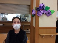 お花を見ながら、利用者様は「梅雨の時期なんだなぁ」「最近は季節がわからない」等の話が聞かれていました。