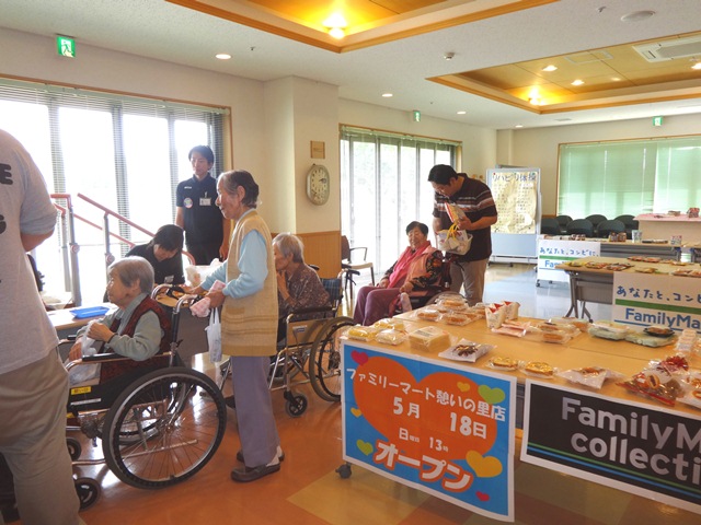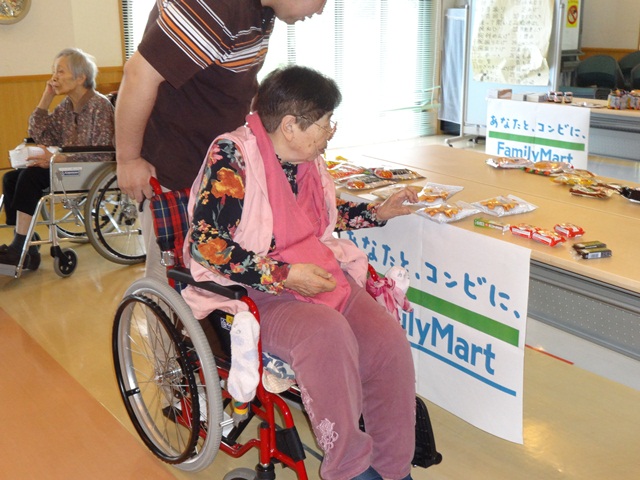 前回が初回だったのですが、ご入居者より大変ご好評を頂いたため定期開催となりました。施設にいるとなかなかご自身で買い物をされる機会はありません。しかし、ファミリーマートさんのご協力により施設にてコンビ二を開店する事ができました。普段なかなかできないお買い物の機会を楽しみにされているご入居者はたくさんいらっしゃいます。