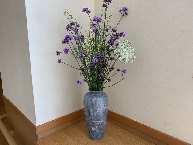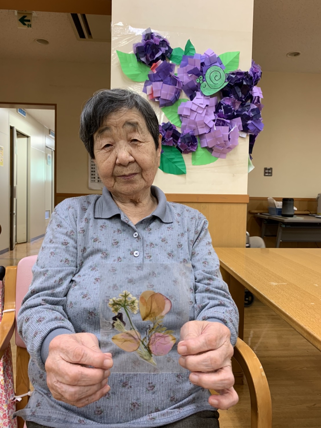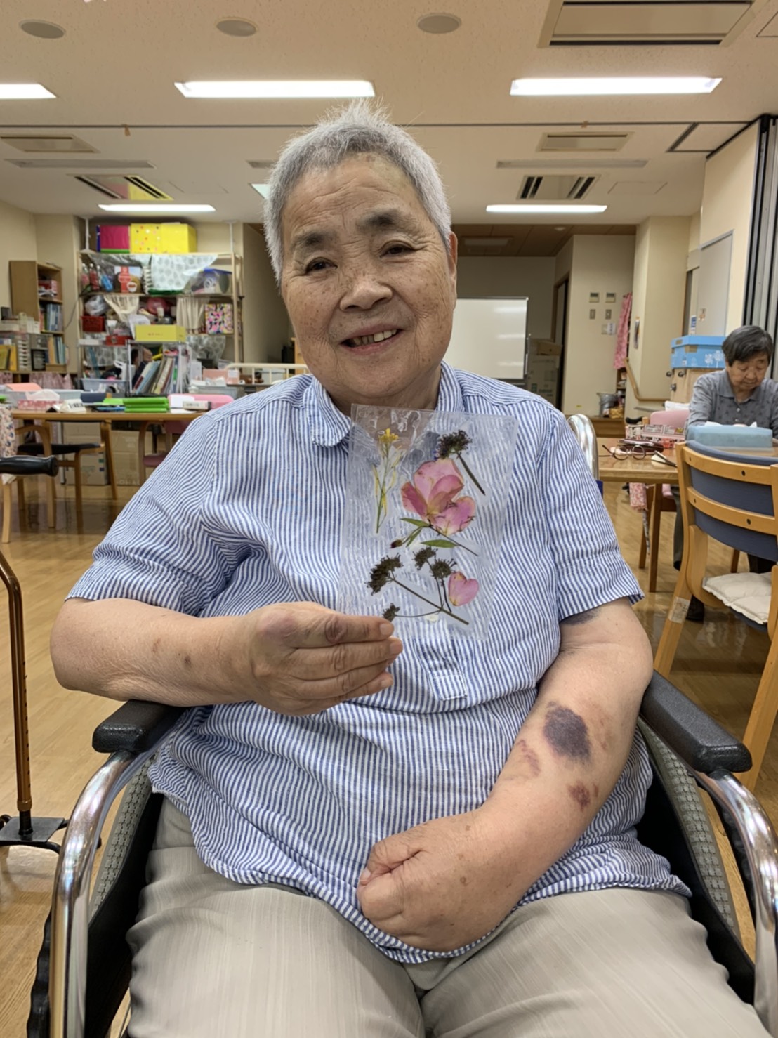 今回は中庭の野草や、ふれあいセンター職員が大切に育てたお花達を使わせていただき、活け花や押花をしてみました。