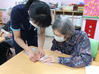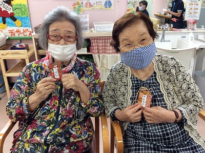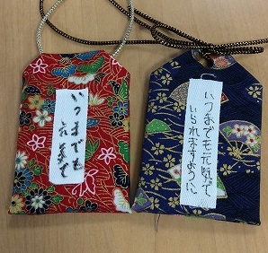 9月21日から25日の5日間敬老週間を開催!!今年は『お守り作り』と『みんなで踊るソーラン節』を行いました。デイサービスのご利用者様、ご家族様の健康を祈って、お守りの中身はアマビエ(つちまる君バージョン)♪細かい作業が多く苦労しましたが、こんな素晴らしいお守りができました。