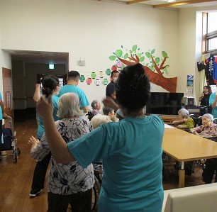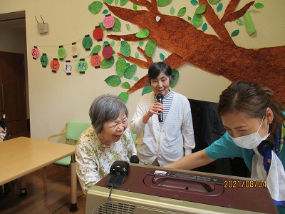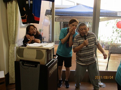 お腹いっぱい食べた後は、カラオケを披露して頂いたり、炭坑節を輪になって踊ったりとにぎやかで楽しい時間を過ごしていただきました!