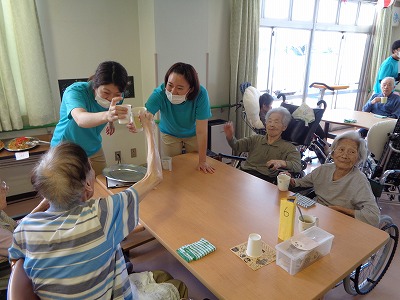 8/5木曜日、飛羽ノ園の従来型にて、納涼祭を開催致しました。昨年に引き続きコロナ対策の下ではございますが、皆様の笑顔が沢山見る事が出来ました!