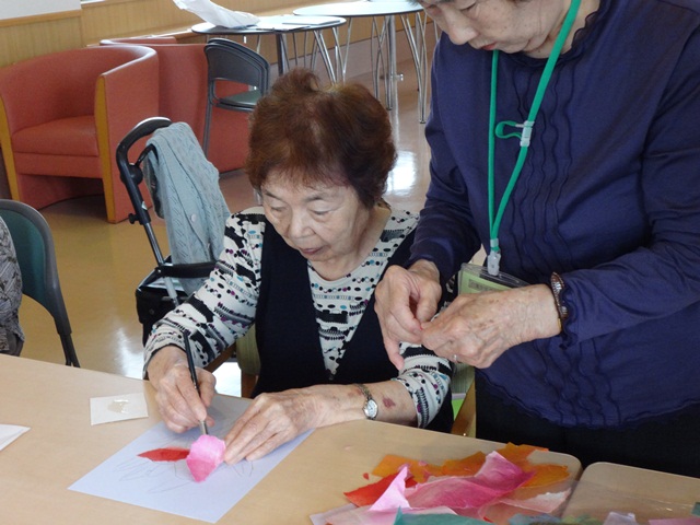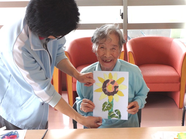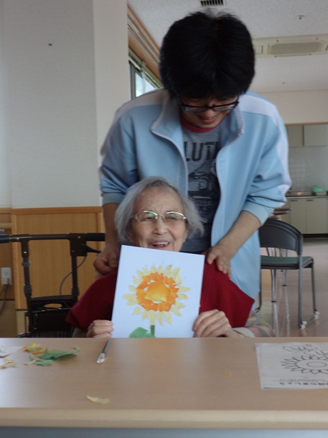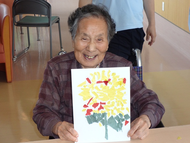 ご入居者によっては、約2時間弱をずっと集中されていて、作品が出来上がったときには