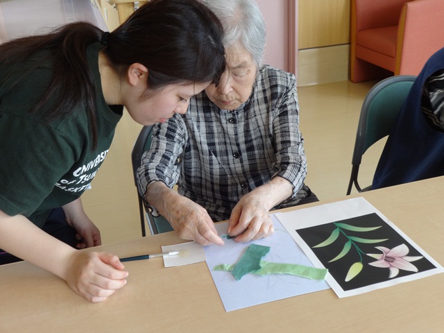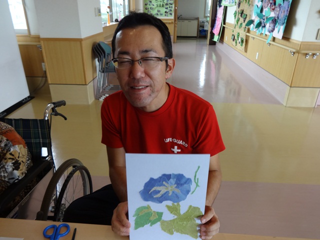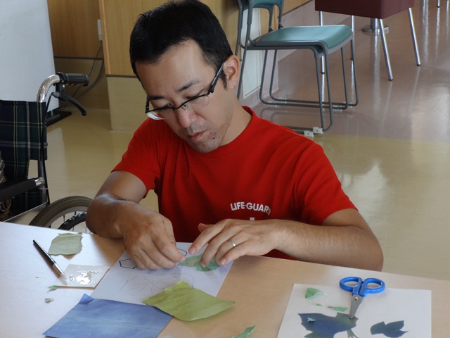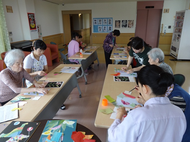 下書きの通りに和紙をちぎるのは至難の業で、職員もお手伝いさせて頂き協同作品を仕上げました。